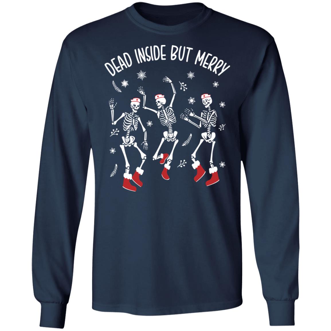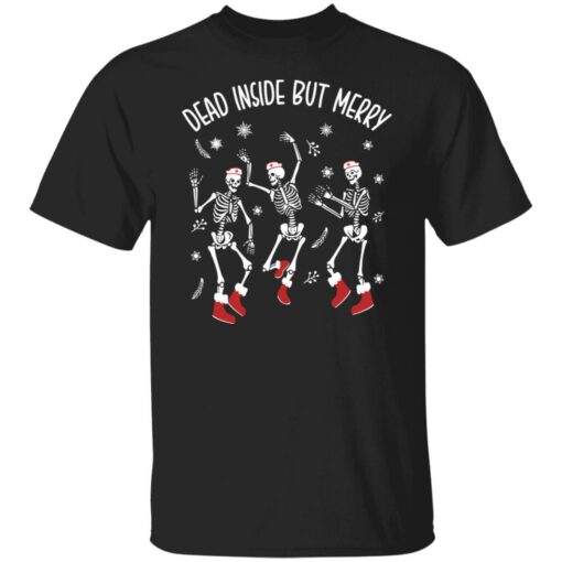 Dancing skeleton dead inside but merry shirt, hoodie, sweatshirt,…now available at www.lelemoon.com featuring delicate, skillful stitching, and a variety of fresh colors that are sure to please even the picky most counted.