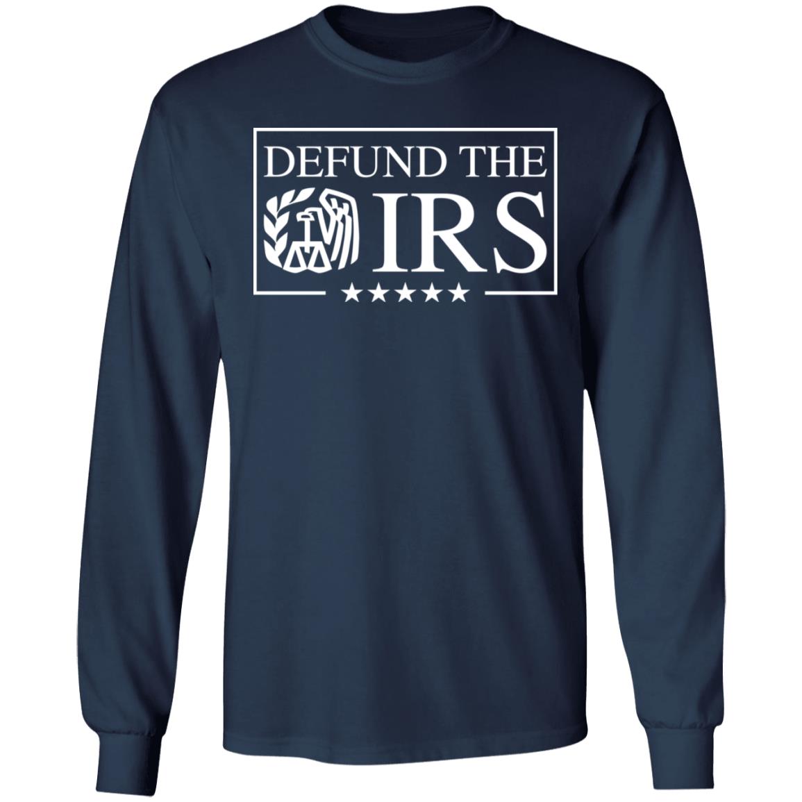 Black and navy these are the hottest new designs to share with your friends. We print on high quality cotton tees with a soft & pre-shrunk feel. Defund the irs shirt is perfect for lounging around the house or out on the town!