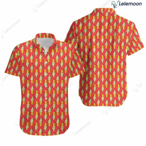 Introducing the Dole Whip Float Inspired Short-Sleeved Button Down Shirt, a delightful and refreshing garment that captures the essence of the beloved treat in a stylish and playful design. This shirt is a perfect blend of tropical flair and whimsical charm, inspired by the iconic Dole Whip Float.