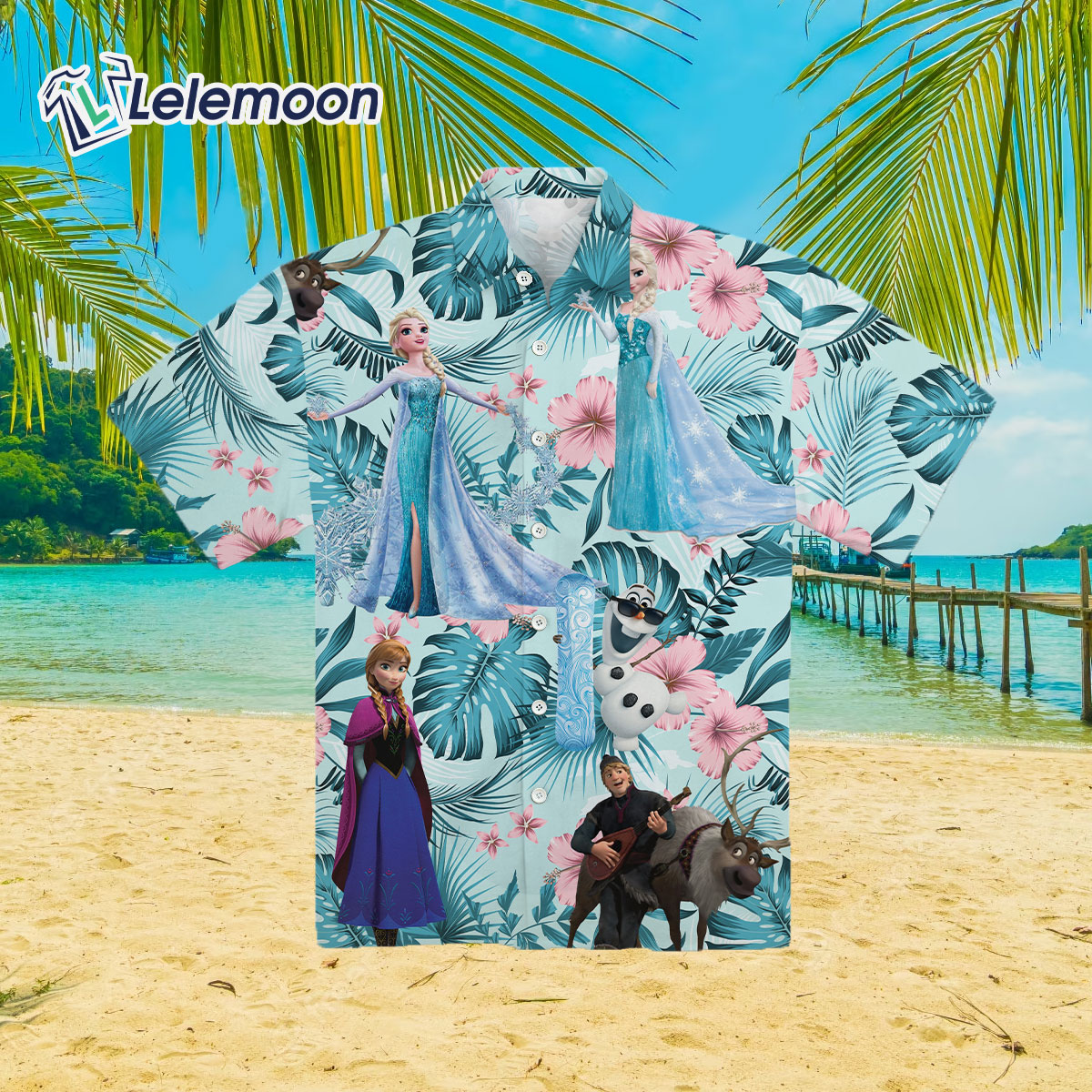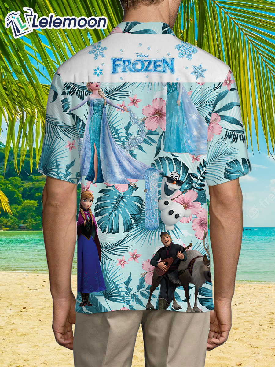 Whether you’re a devoted fan of “Frozen” or simply appreciate the charm of tropical attire, this shirt is a fantastic way to showcase your love for the film. It’s perfect for vacations, beach outings, themed parties, or simply adding a touch of magic to your everyday style.