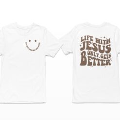 Life with Jesus Only Gets Better Sweatshirt, Hoodie, Shirt is a religious and inspirational garment that conveys a profound message of faith and personal growth. This sweatshirt is designed for individuals who want to express their devotion and belief in Jesus Christ while also promoting a positive and hopeful perspective on life.