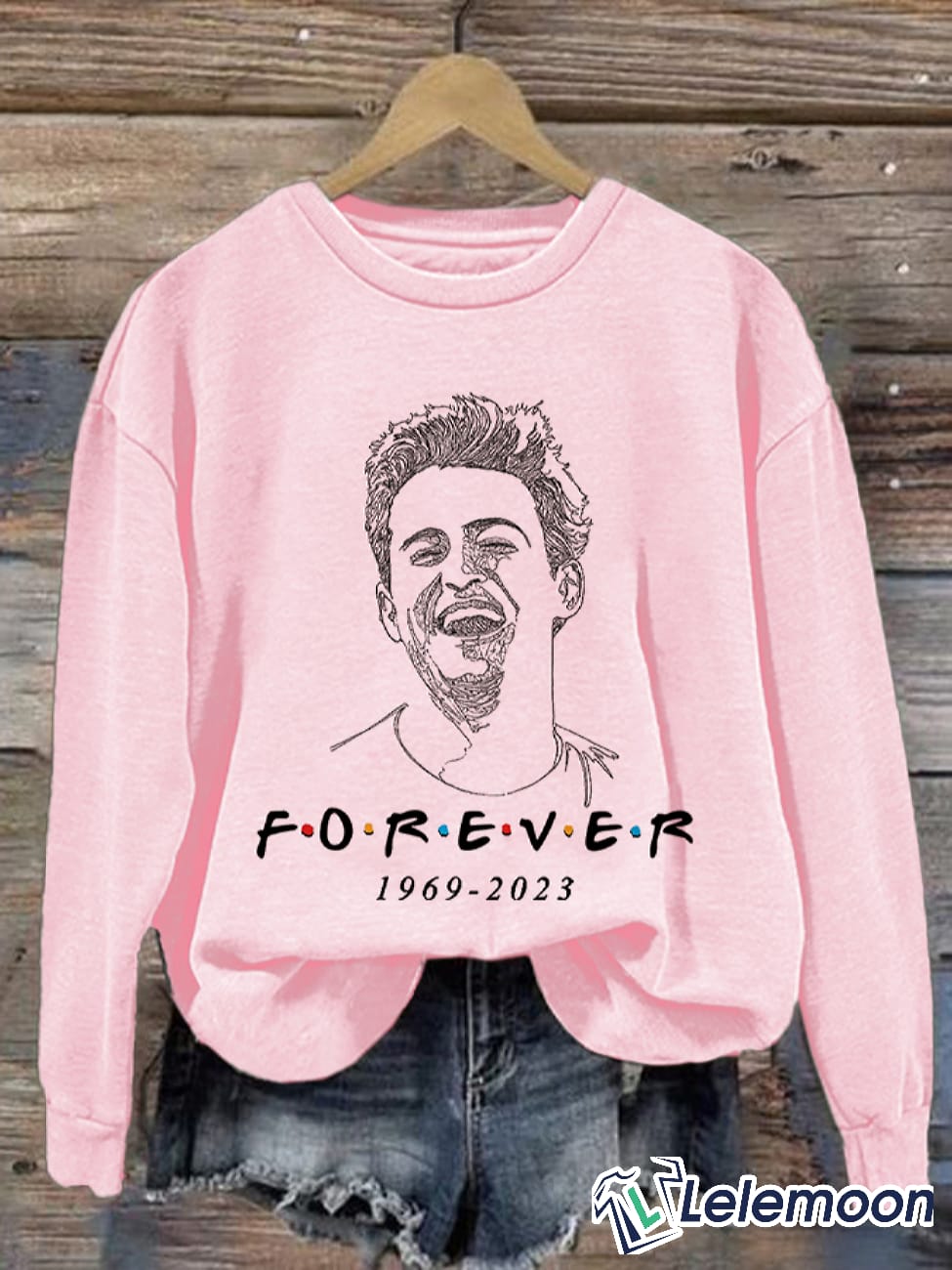 The shirt and sweatshirt feature the years “1969 – 2023,” marking Matthew Perry’s birth year and serving as a commemoration of his life and career. The phrase “Friends Forever” reflects the enduring love and admiration that fans have for both the actor and the show that became a cultural phenomenon.