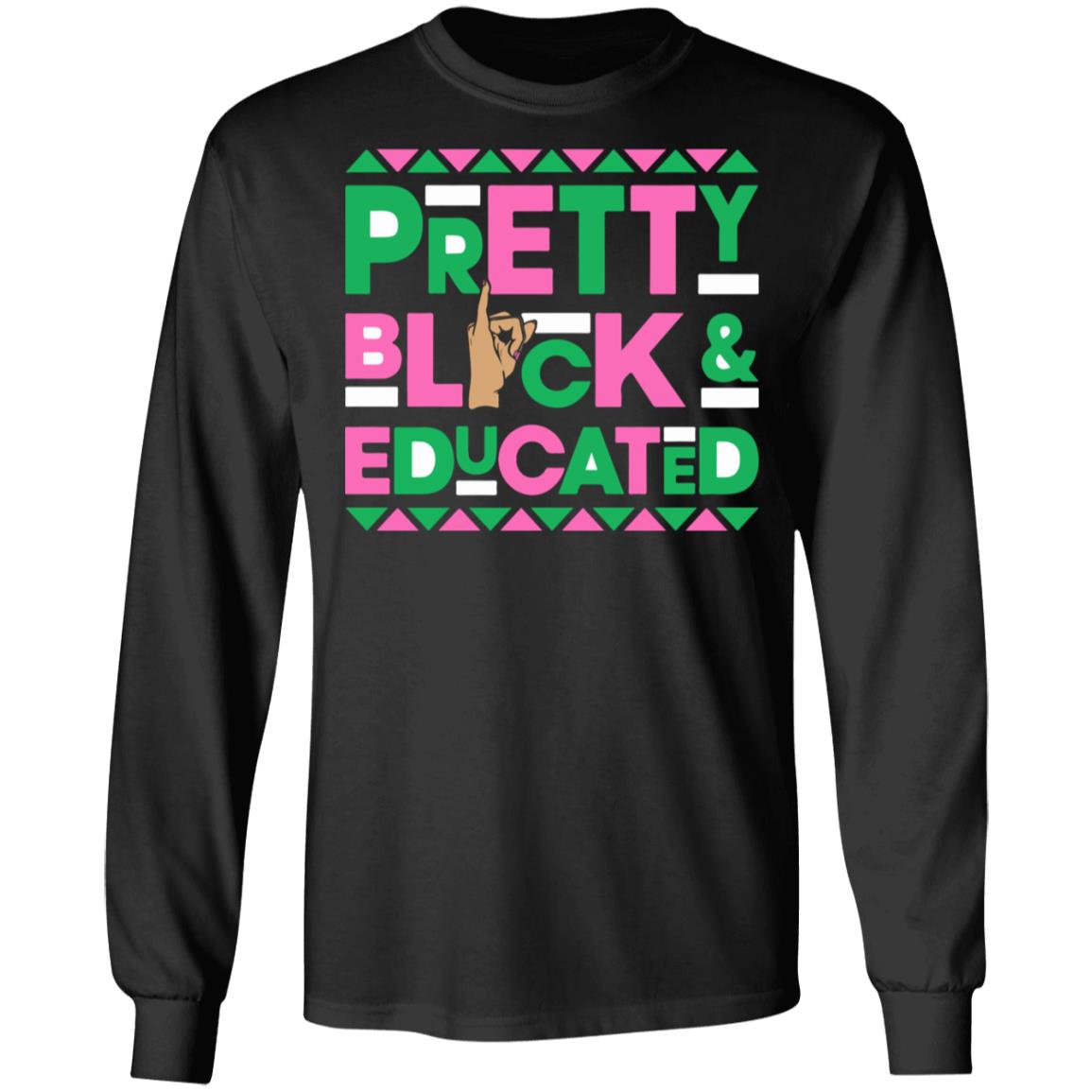 You want to look for shirts with unique text patterns, Pretty black and educated hand sign sweatshirt, hoodie, sweatshirt, … is one of them. You can now buy Pretty black and educated hand sign sweatshirt, shirt, hoodie, … at lelemoon.com.