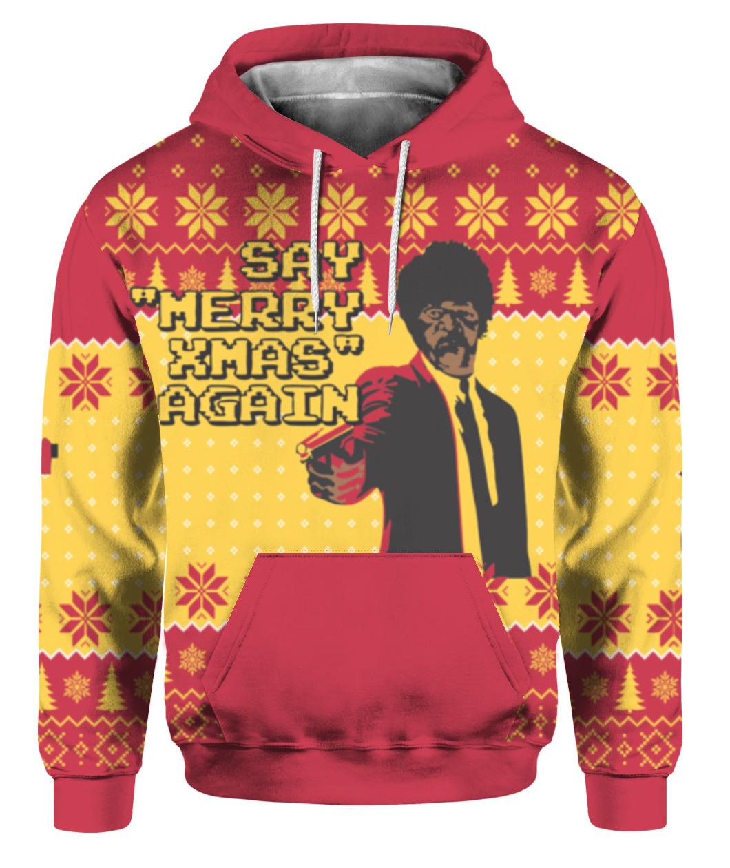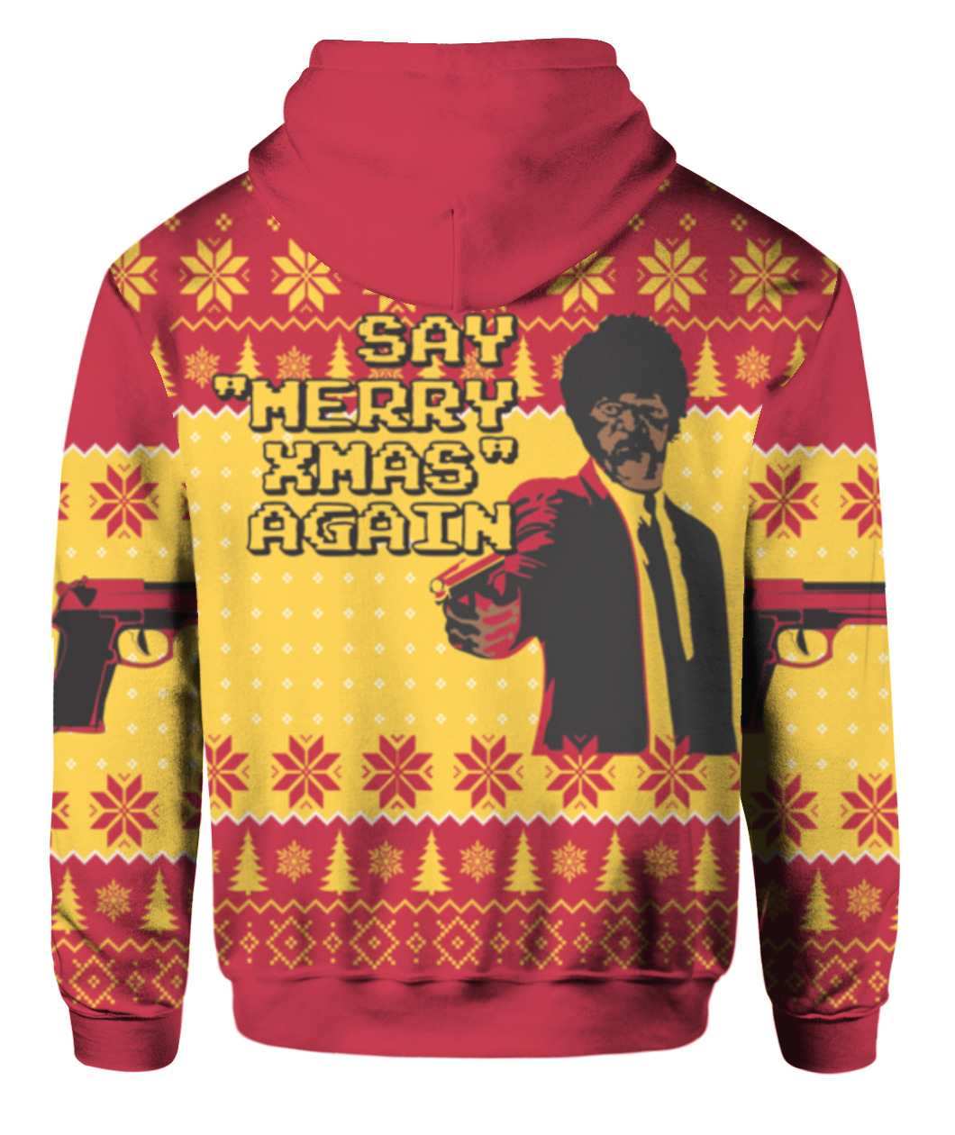 Pulp Fiction Merry Xmas Again ugly Sweater available at www.lelemoon.com is the perfect choice for men with simplicity, convenience, courtesy, health and elegance. The shirt is also sewn with sweat-absorbing fabric and is comfortable without restraint when exercising