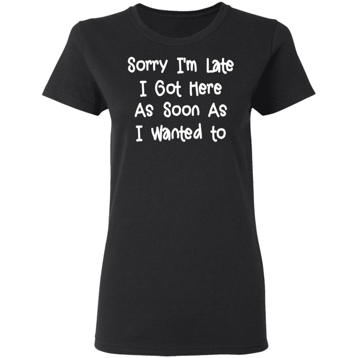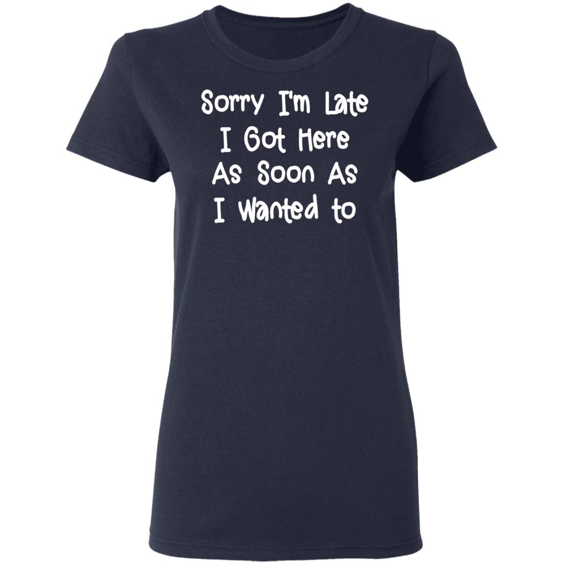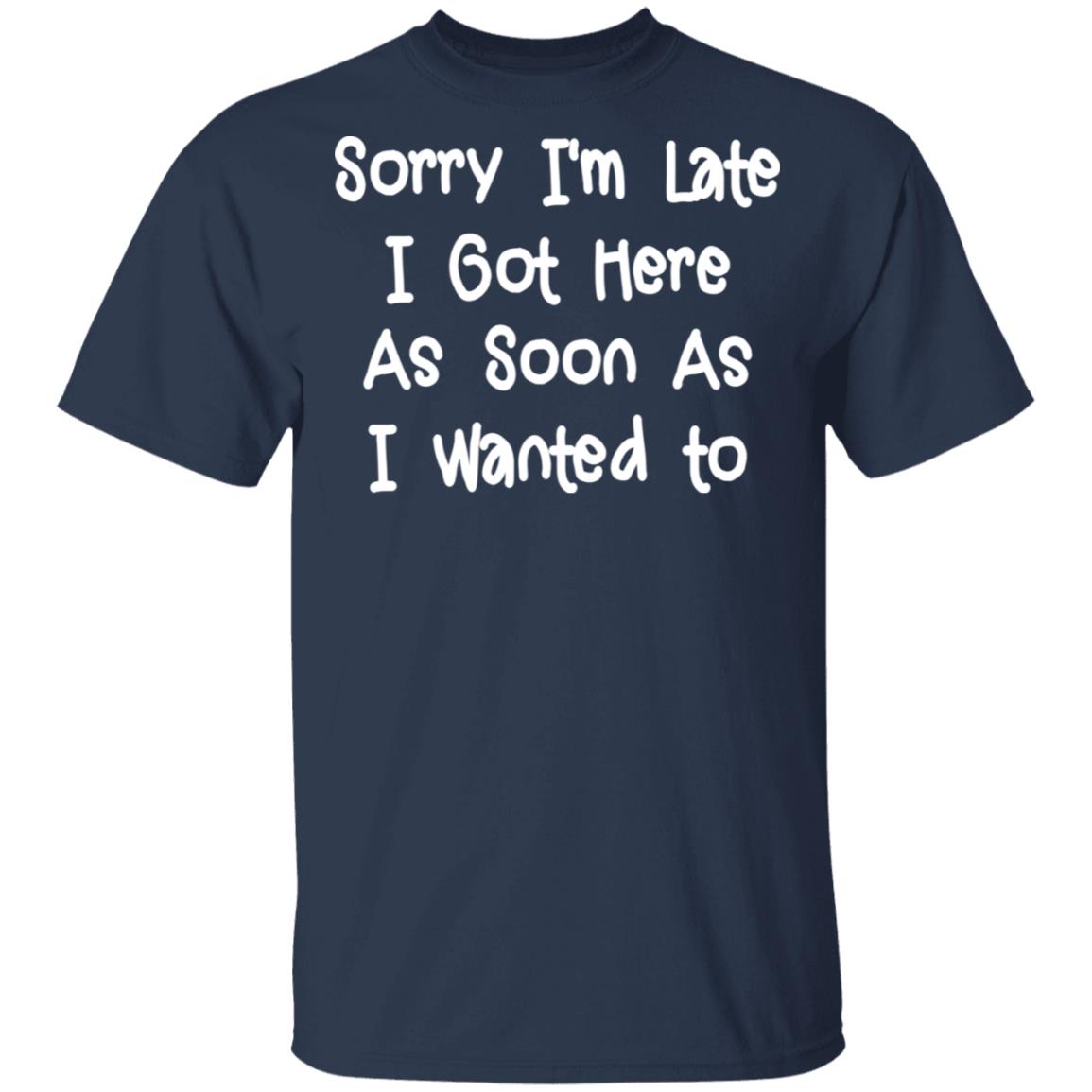 Is punctuality not your best trait? Travel in style & apologize with flair. Say it loud, say it proud with the Sorry I’m late I got here as soon as I wanted to shirt! Show your friends & family that you don’t just conform to society & have fun while doing so. Whether you’re running late to brunch or supper, this shirt is perfect for any occasion! Available in multiple colors & styles, grab yours today and make a statement.