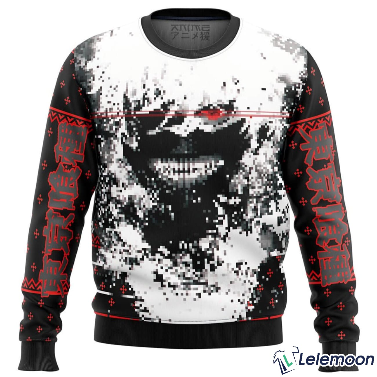 Whether you’re attending an ugly Christmas sweater party or just want to add some holiday cheer to your wardrobe, this Tokyo Ghoul Kaneki Splatter Ugly Christmas Sweater is the perfect choice!