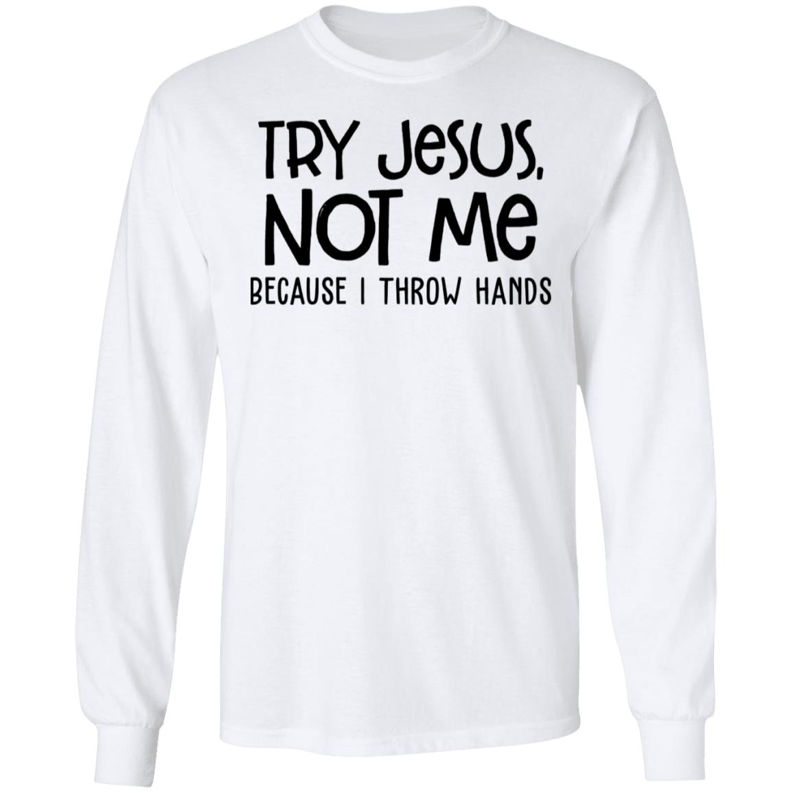 Coming to Lelemoon, you will see a lot of beautiful products. Including Try Jesus not me because I throw hands shirt, hoodie, sweatshirt, … has just been released. To be able to discover the interesting thing of Try Jesus not me because I throw hands shirt buy it right away.